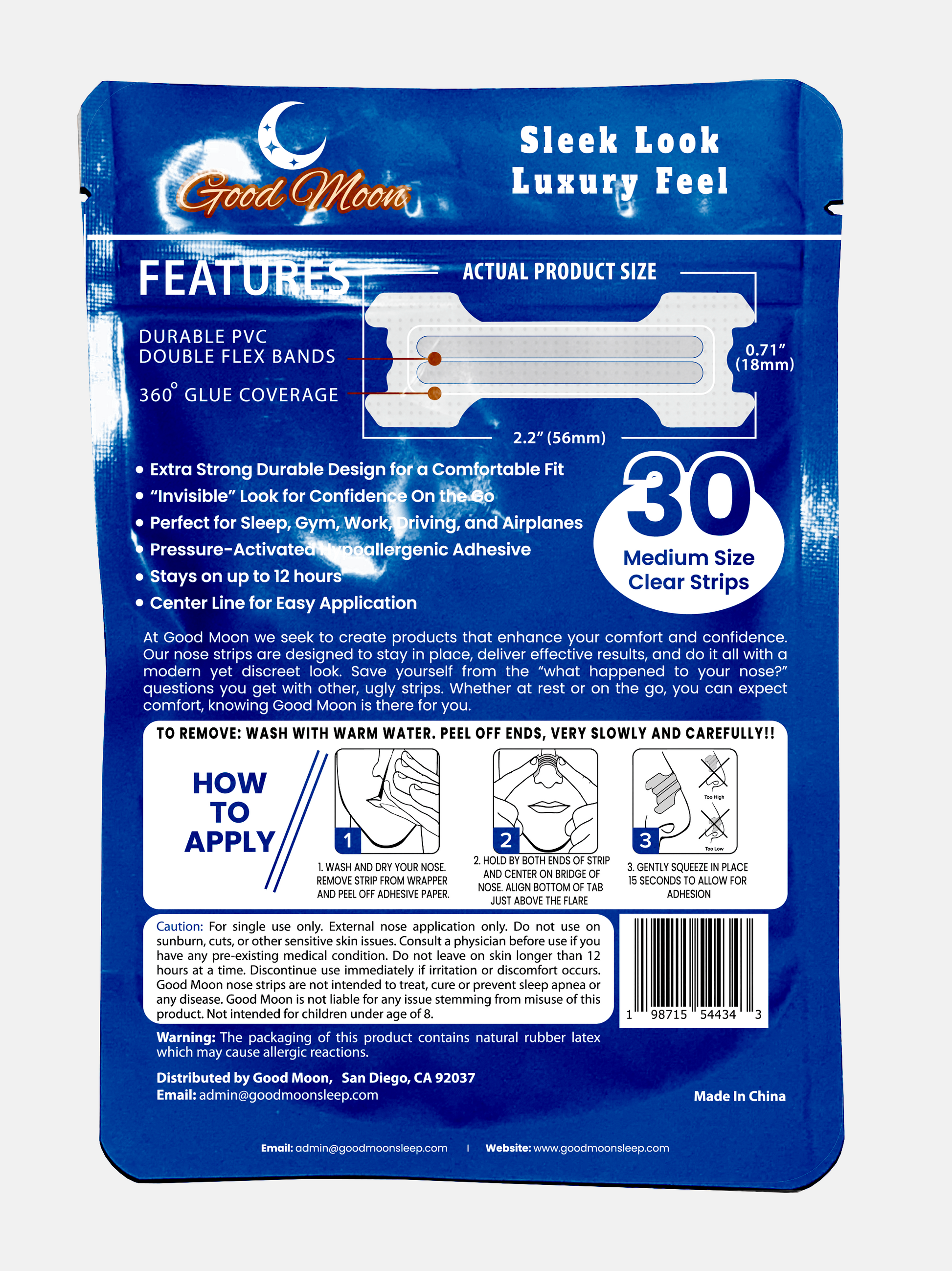 These strips should be worn to sleep, or during any activity requiring focus. They are clear and look 'Invisible'. Made super strong to help you breathe easily. Medium size is recommended on average. Strips fit on the outside of noses ranging from small to large. The XL suites a larger nose profile, and may be a better option for some people.
