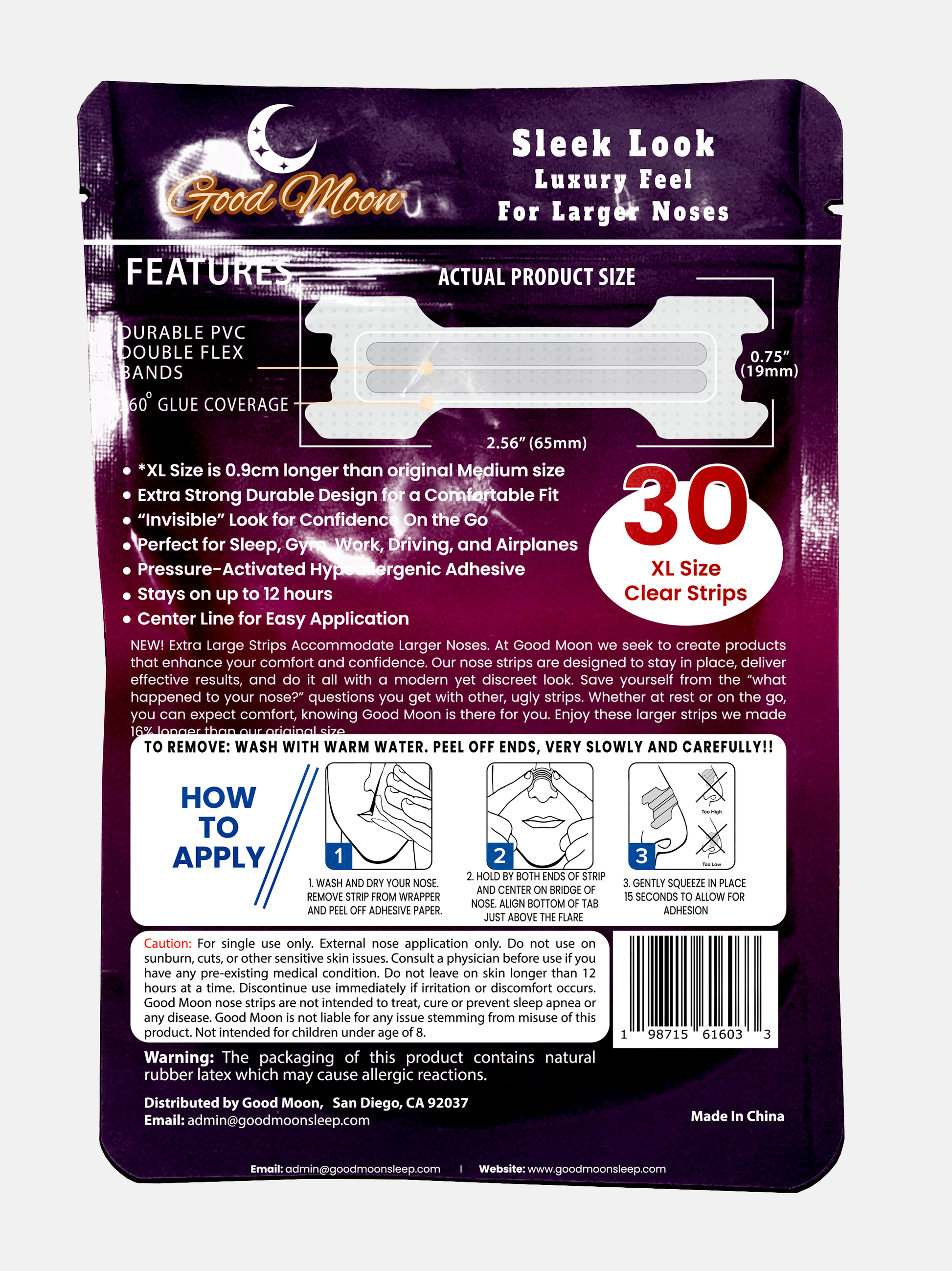 These strips should be worn to sleep, or during any activity requiring focus. They are clear and look 'Invisible'. Made super strong to help you breathe easily. We crafted the XL size for those with a larger nose profile.